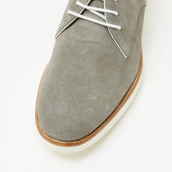 適度に丸みがあり、シャープなつま先はすっきりとした印象のプレーントゥシューズ。