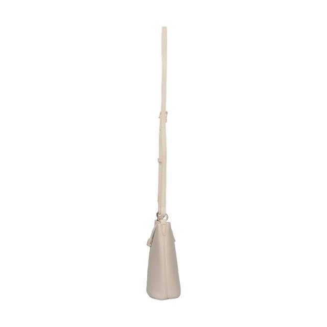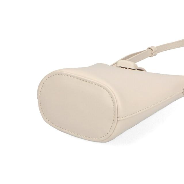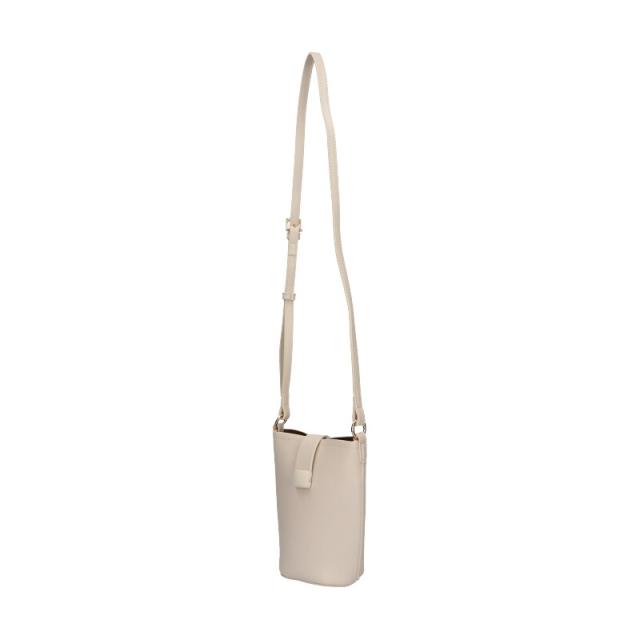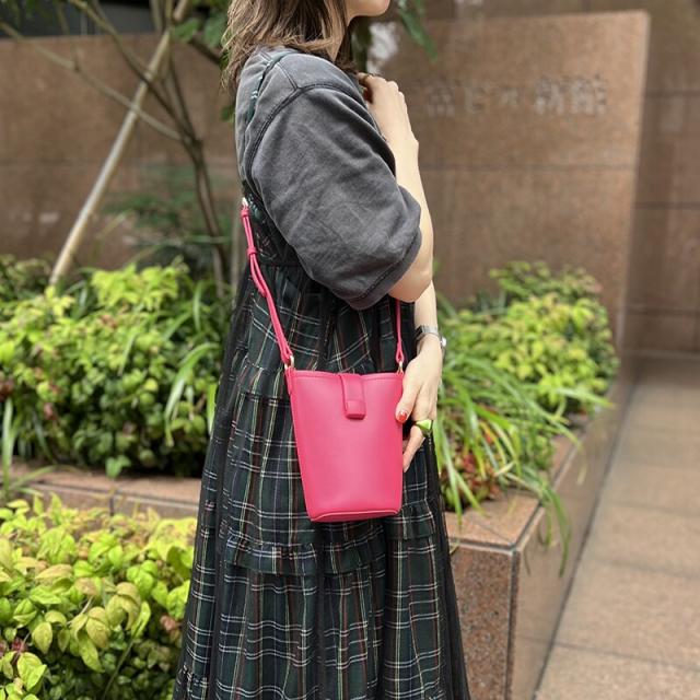 高級感あるセミマットの素材を使用したショルダーポーチは間口に付けたフラップデザインで大人な印象に。