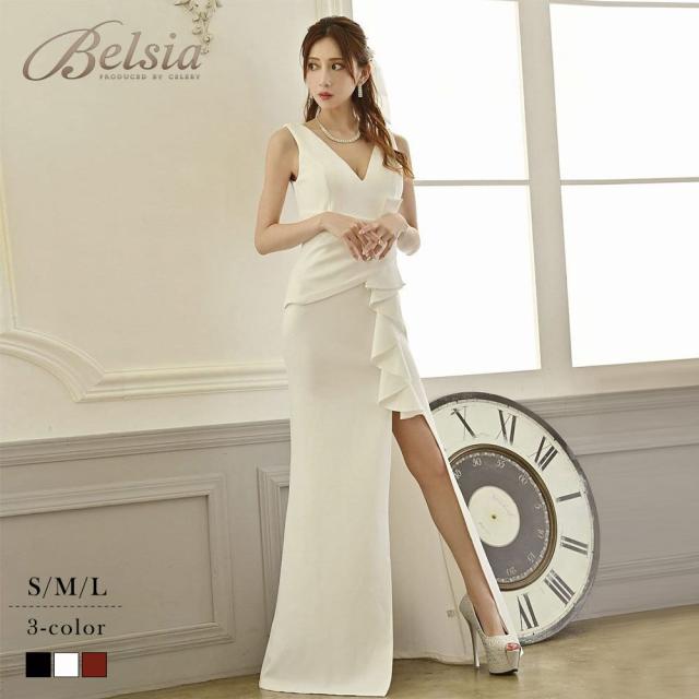 一部予約販売 ロングドレス Belsia 高級感 Vネック 美脚 体型カバー ストレッチ キャバ ドレス キャバドレス ロング