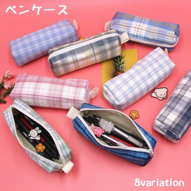 ペンケース 文房具 筆箱 筆入れ 鉛筆入れ チェック柄 青 ファスナー かわいい おしゃれ 高校生 中学生 鉛筆 デザイン豊富