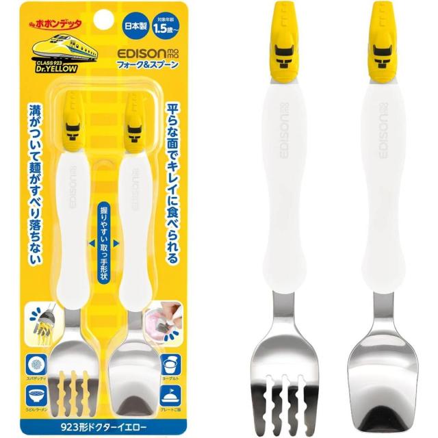 エジソンママ ドクターイエロー フォーク&スプーン KJ296 1.5歳〜 1歳半〜 セット 新幹線 子供用 キッズ 滑りにくい