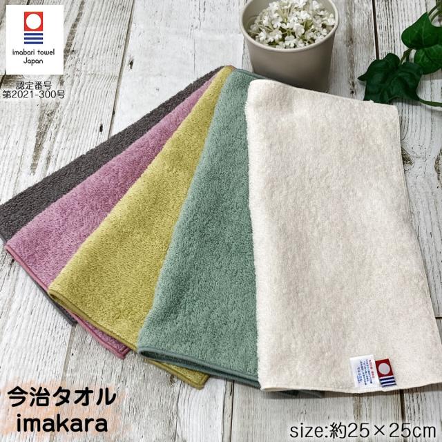 今治タオル imakara 約25×25cm 日本製 ハンドタオル 無地 シンプル ギフト プチギフト おしゃれ 吸水 タオルハンカチ 綿100 コットン 今治 くすみカラー 手拭き 汗拭き 顔拭き 部活 高校生 大人 レディース メンズ グレー アイボリー パープル グリーン イエロー