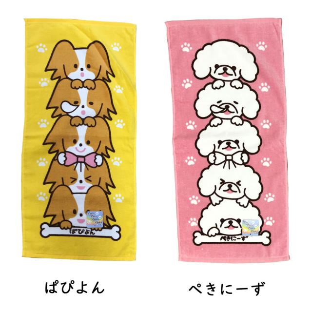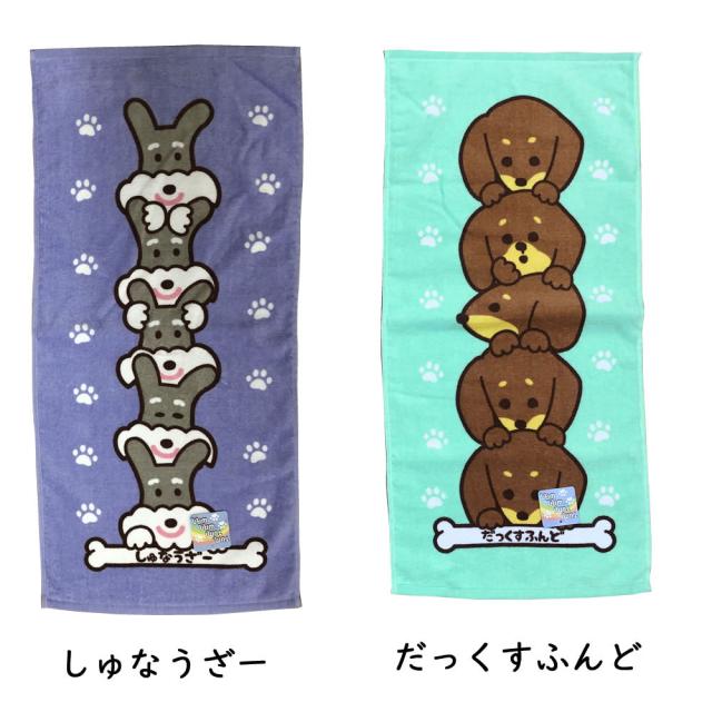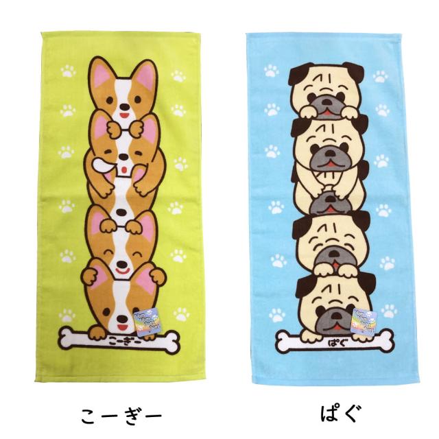 | 積み重なったわんこのお顔がかわいらしい つみつみわんわん フェイスタオル |