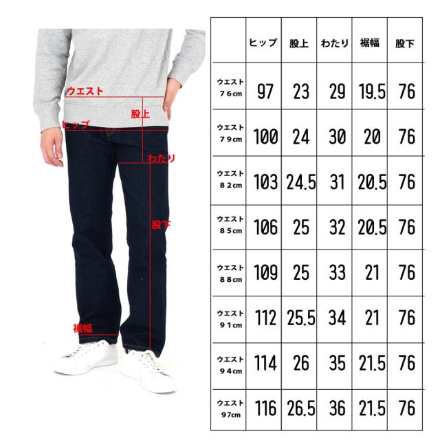 (ウエスト97cm)股上約26.5cm わたり幅約35.5cm ヒップ約116cm 裾幅約21.5cm 股下約76cm(加工前)