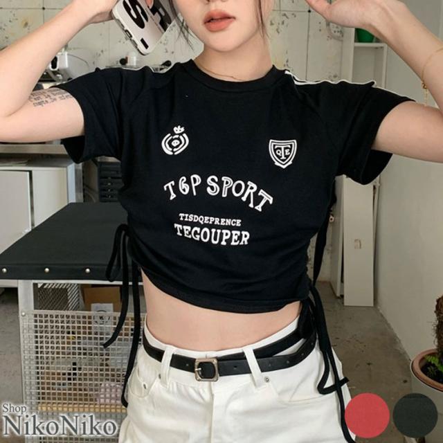 全品送料無料一部除く ショート丈 袖ライン ゲームTシャツ ma 【即納】 韓国カジュアル 海外ガール トップス 半袖 チビT ミニ丈 クロップド丈 へそ出し ユニフォーム風 ゲームシャツ レディース 韓国 Y2Kファッション 韓国ストリート 流行り トレンド かわいい
