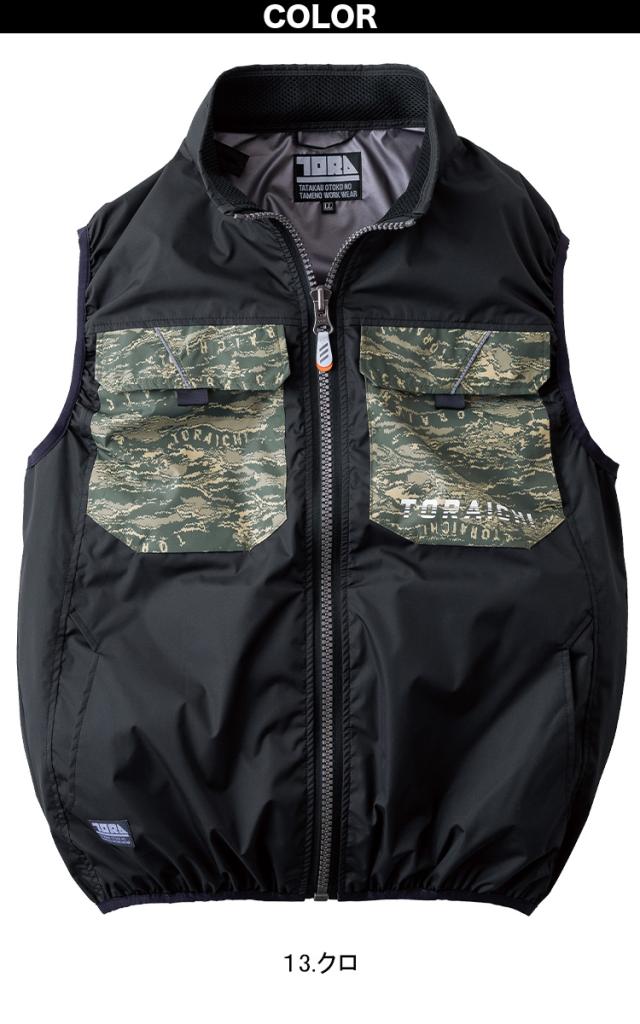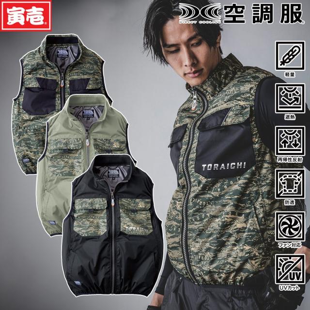 2024年 新商品 空調服 1080-611 空調服 寅壱 迷彩 ベスト ミリタリー 裏アルミ 単品 空調作業服 単品 遮熱 作業服 TORA 空調服社 遮熱加工 服のみ
