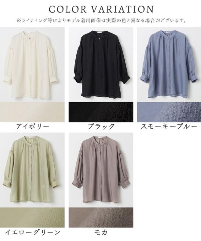 トップス ブラウス レディース 白 黒 きれいめ フェミニン 通勤 オフィス 無地 バンドカラー SALE セール Honeys ハニーズ 8分袖ギャザーブラウス