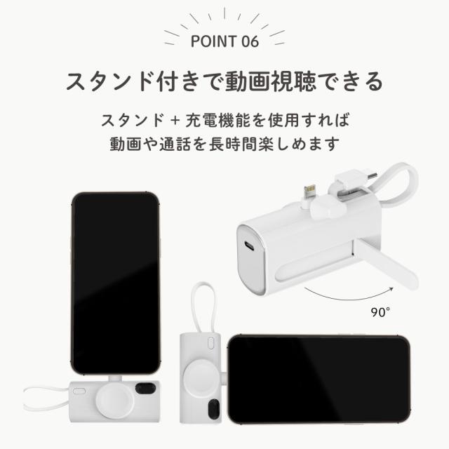 ★赤字覚悟!1000円引き★モバイルバッテリー 小型 軽量 アップルウォッチ充電器 最新OS対応 Apple Watch 充電器 ミニ iPhone 大容量 5000mAh ワイヤレス充電器 スタンド付 lightning ipad Android type-c 一体型 急速充電 3台同時 コードレス スマホ充電器 ケーブル内蔵