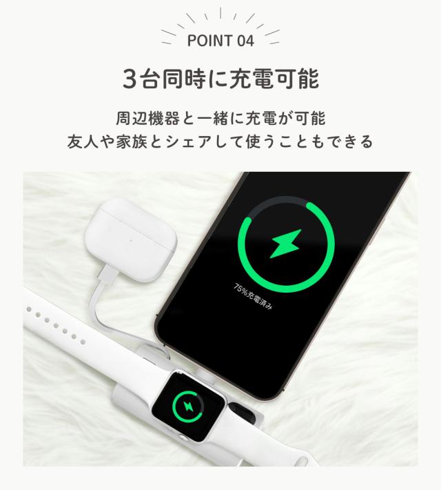 - Apple Watchの充電器を探していたら、こちらの商品が目にとまり購入しました。 Apple Watchだけでなくスマホも充電が出来て、モバイルバッテリーなので持ち運びも出来るのでとても便利です。...