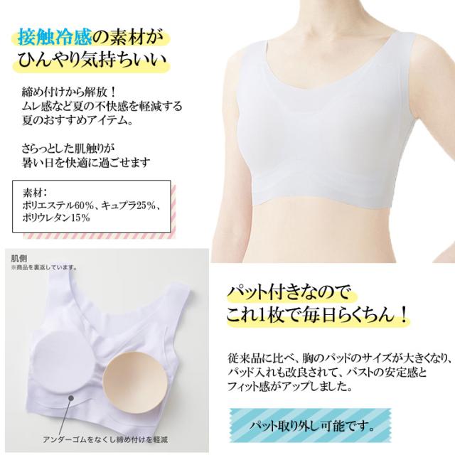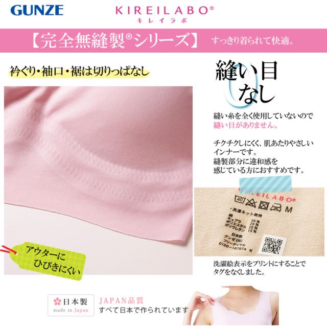 インナー レディース GUNZE KIREILABO ハーフトップ KL7255 単品 ひんやり接触冷感 無縫製 縫い目なし パッド付(02558)