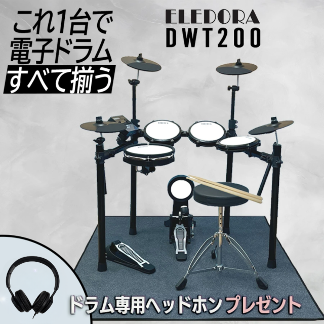電子ドラム ELEDORA エレドラ 電子ドラムセット 初心者からプロまで DWT200 メッシュパッド【マット&スティック&スローン付き♪】【レビュー投稿でヘッドホンプレゼント中♪】【すべてが揃う♪フルセット】