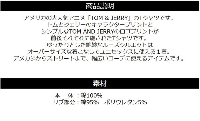 TOM & JERRY トムとジェリー アメコミ バックプリント 半袖 tシャツ メンズ ビッグT ユニセックス ビッグシルエット ストリート 【I2-1293】 送料無料 通販A15
