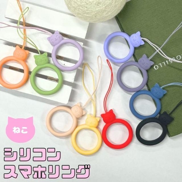 リングストラップ ネコ スマホリング かわいい 猫 ストラップ おしゃれ 携帯ストラップ 落下防止 スマホ iPhone シリコンストラップ