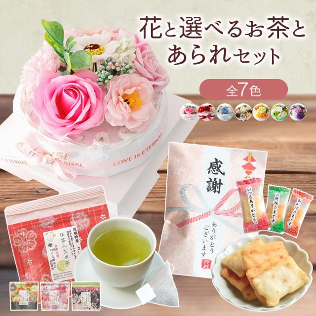 ソープフラワー 花 花ギフト ケーキ フラワーケーキ 誕生日 プレゼント 誕生日プレゼント 記念日 お祝い 退職 結婚 ギフト バラ お茶 造花 あられ 煎餅 お菓子 母 女性 男性 花とお菓子 お返し ギフトセット 送料無料