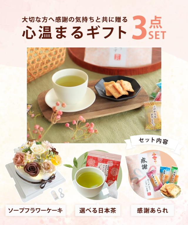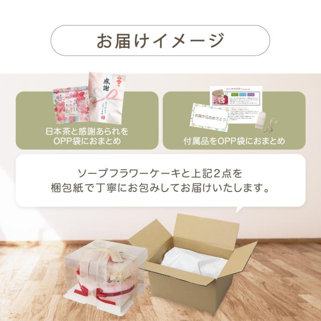 「ソープフラワーケーキと日本茶と感謝あられセット」