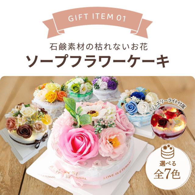 シャボンフラワー ソープフラワーギフト アレンジメント お祝い LED ジュエリー メッセージカード フラワーケーキ 古稀 米寿 10代 20代 30代 40代 50代 60代 70代 80代