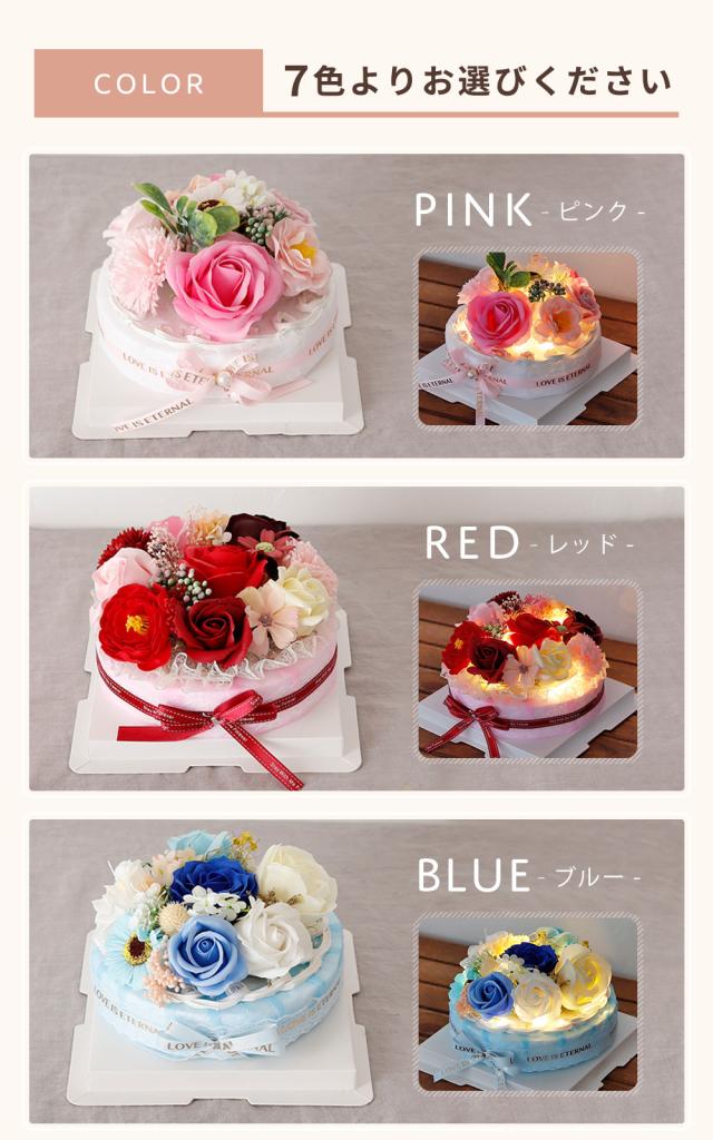 お手入れ不要で枯れずに長い間楽しめるソープフラワーケーキ。