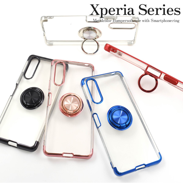 スマホケース Xperiaシリーズ用 スマホリング付き メタルカラー バンパー ソフトクリアケース Xperia 1 III / Xperia 1 IV / Xperia 5 III / Xperia 5 IV / Xperia 10 III / Xperia 10 IV / Xperia Ace II / Xperia Ace III クリアケース