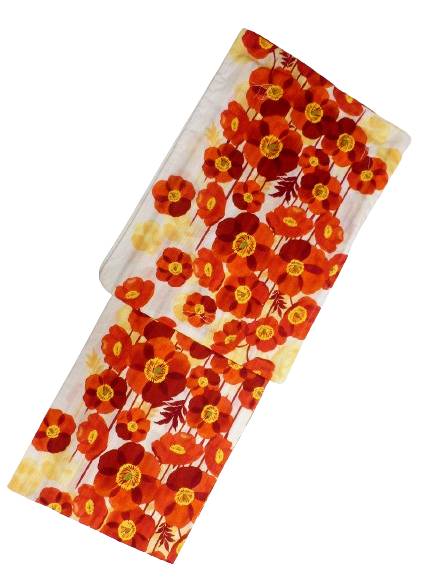 仕立て上がり浴衣 浴衣 プレタ 対応身長 155cm-168cm 変わり織 綿 白地 オレンジ ポピー 柄 No.2411 セットにするとさらにお得!!