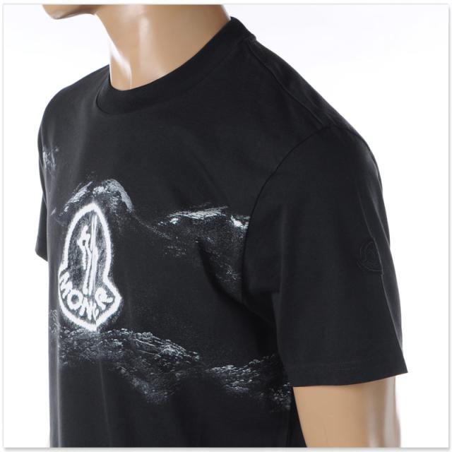MONCLER モンクレール Tシャツ メンズ 8C00050 89AKK 半袖 ブランド ブラック 黒 クルーネック コットン ロゴ プリント 高級 おしゃれ 人気 カジュアル ストリート モード 送料無料