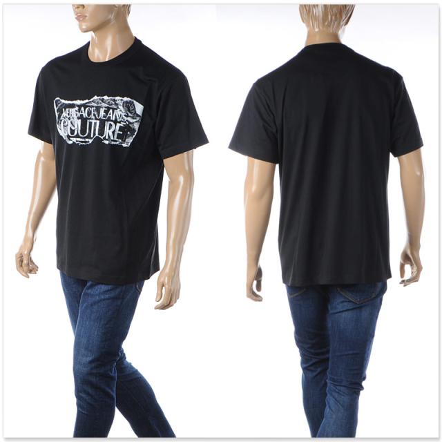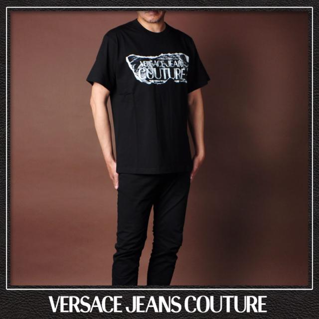 ヴェルサーチ ジーンズ クチュール VERSACE JEANS COUTURE Tシャツ メンズ 76GAHE03 CJ00E ブラック ブランド ロゴ プリント コットン カジュアル ストリート おしゃれ 人気 送料無料