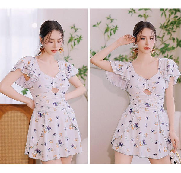 水着 レディース ワンピース 体型カバー水着 フリル袖 大きいサイズ ぽっちゃり かわいい おしゃれ フリル袖 ハイウエスト 露出控えめ カットアウト カッティング 二の腕 お尻 太もも お腹 カバーアップ 20代 30代 40代 ママ水着 L XL 2XL 3XL 4XL df077zbzbzu