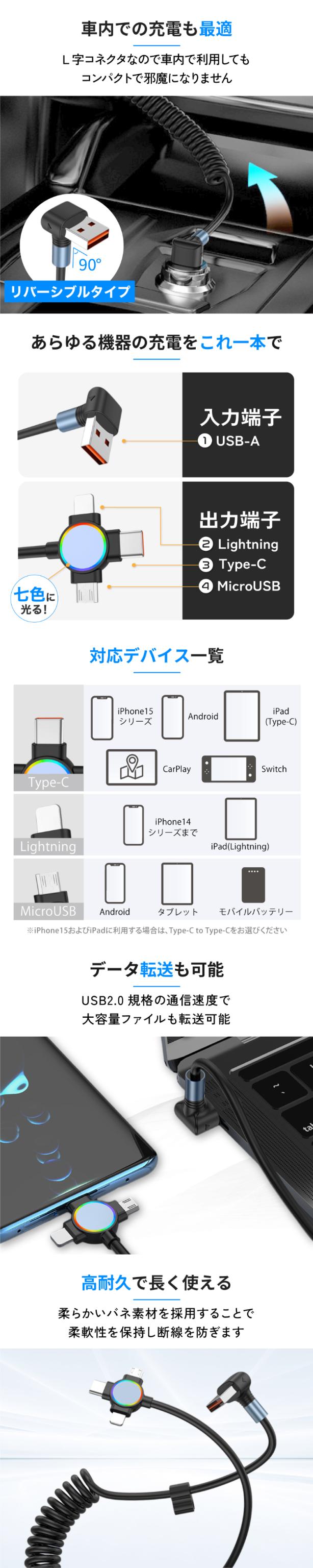スマホ iPhone Android Xperia AQUOS Galaxy iPad MacBook Switch 充電 充電器 充電コード 充電器ケーブル 携帯充電器 アンドロイド タイプc typec アイフォン lightning タブレット コード 端末 コネクタ 断線しづらい 絡まりにくい cable data iPhone15 iPad MacBook Pro iPod AirPods Xperia AQUOS arrows Galaxy HUAWEI Zenfone Nexus Nintendo Switch 携帯ゲーム機 コントローラ 充電用 便利 簡単 外出先 持ち歩き 防災 避難