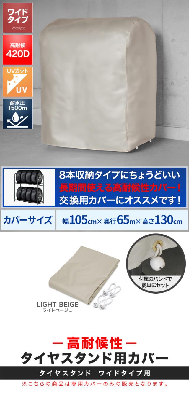 タイヤラックカバー タイヤスタンドワイドタイプ用 高耐候 収納カバー 厚手 420D 高耐水1500mm UV遮蔽率99.9% 最大8本収納/幅100cm用 タイヤスタンド タイヤ収納ラック 交換用カバー 交換カバー オプション ※スタンド本体別売 1年保証 送料無料