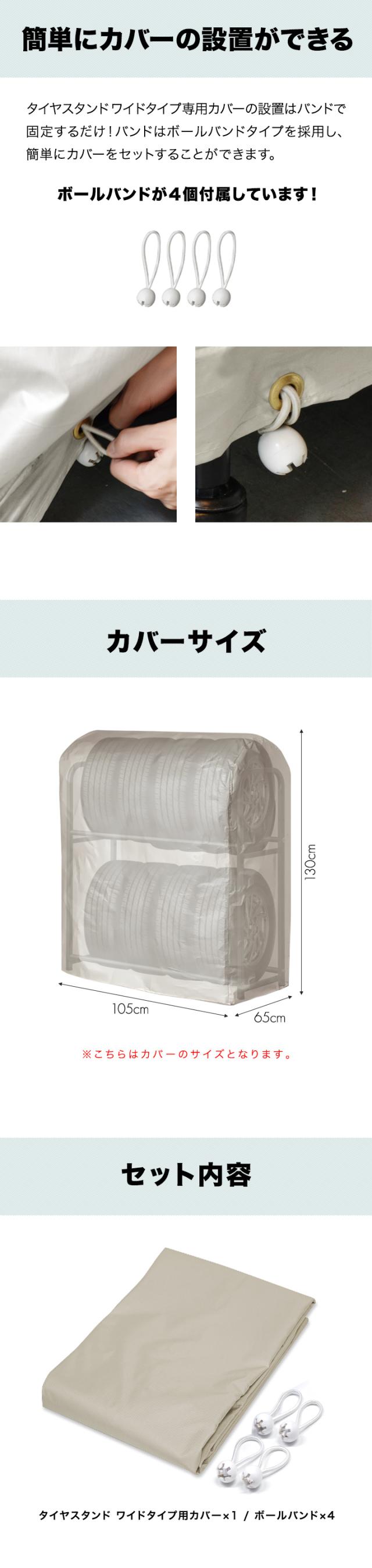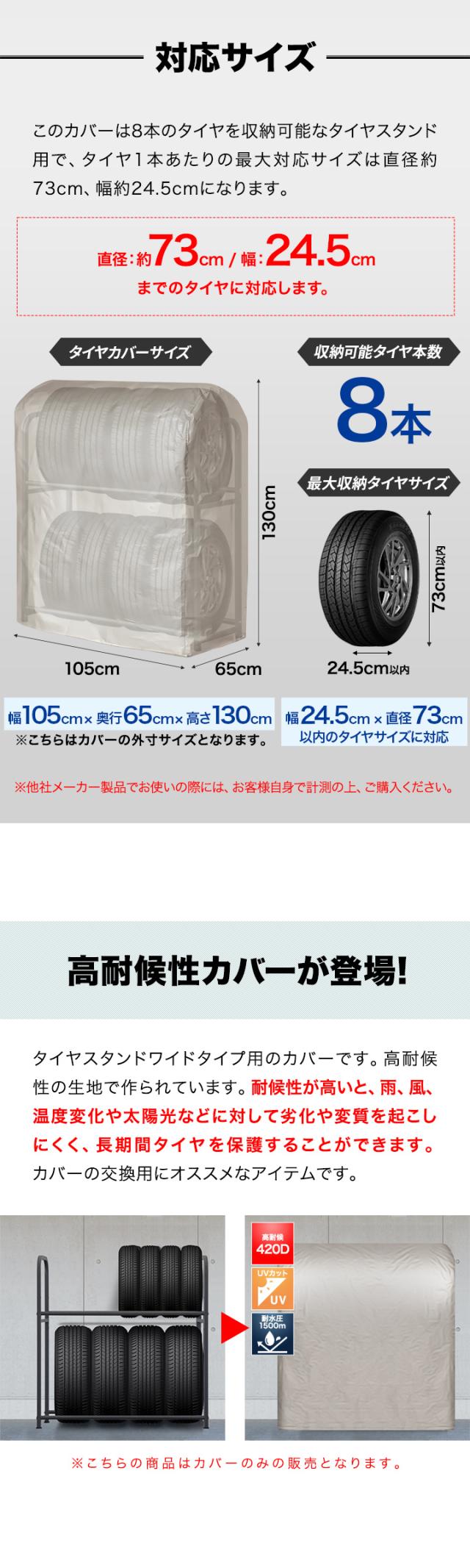 | 特記事項: ※こちらはタイヤスタンド ワイドタイプ専用カバーです。 ※こちらはカバーのみの販売となります。タイヤスタンド本体は付属いたしません。 |