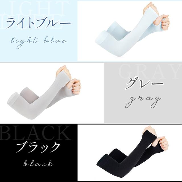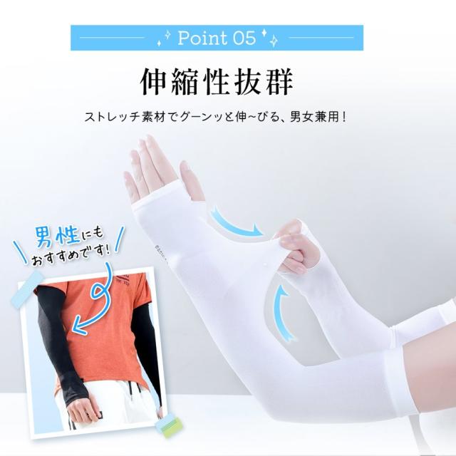 【3枚購入で100円OFF】冷感 アームカバー UVカット 防蚊 接触冷感 指通し&通常 2タイプ ロング丈 メンズ レディース スポーツ 無地 夏用