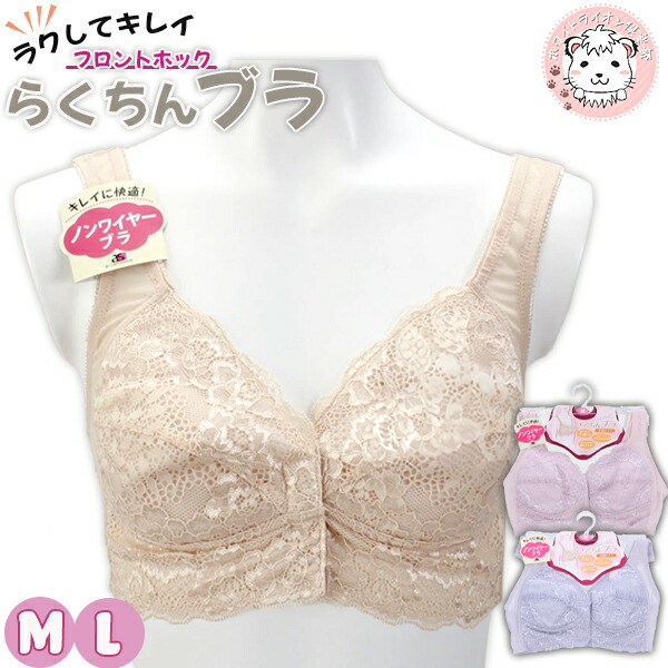 フロントホックブラ らくちんブラ ノンワイヤー 前開き カップ付 M/L | 快適サポート メッシュ 年間 レース レディース ナイロン ハーフトップ インナー