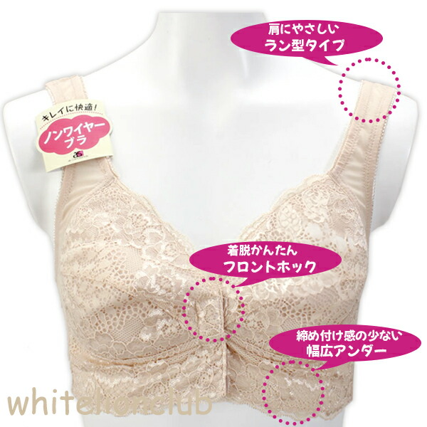 レディース 婦人 女性 肌着 下着 インナー ブラジャー ブラ ノンワイヤー フロント 前あき メッシュ