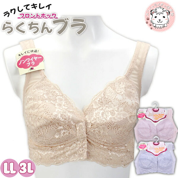 フロントホックブラ らくちんブラ ノンワイヤー 前開き カップ付 LL/3L | 快適サポート メッシュ 大きめ ビックサイズ レース レディース ナイロン ハーフトップ ブラジャー インナー