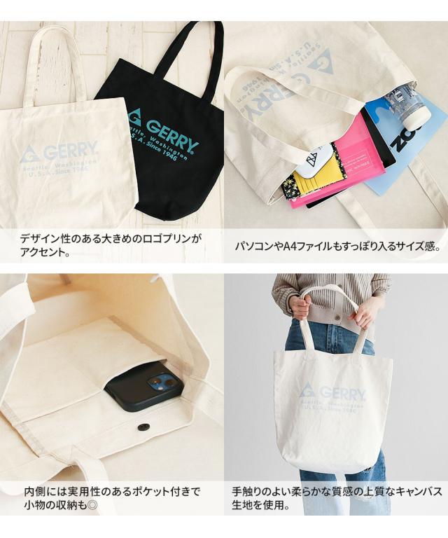 gerry トートバッグ レディース ブランド 大容量 a4 軽量 肩掛け 大人 学生 中学生 高校生 帆布 軽い メンズ 旅行バッグ ロゴ キャンバス おしゃれ カジュアル 普段使い キャンプ アウトドア キャンバストート バッグ 鞄 かばん アイボリー 黒 ブラック ジェリー 1994