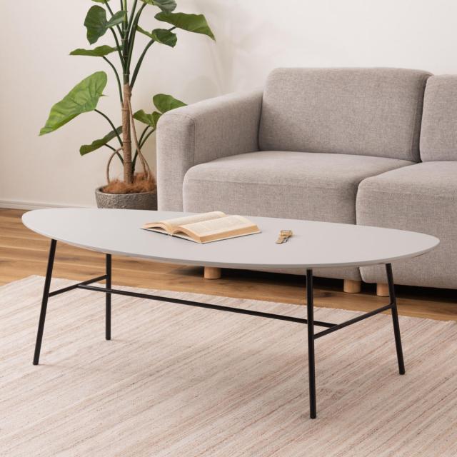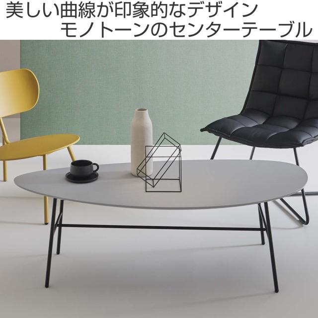センターテーブル 幅130cm 高さ40cm リビングテーブル ( テーブル ローテーブル メラミン天板 モノトーン グレー 丸 ラウンド 曲線 モダン スタイリッシュ )
