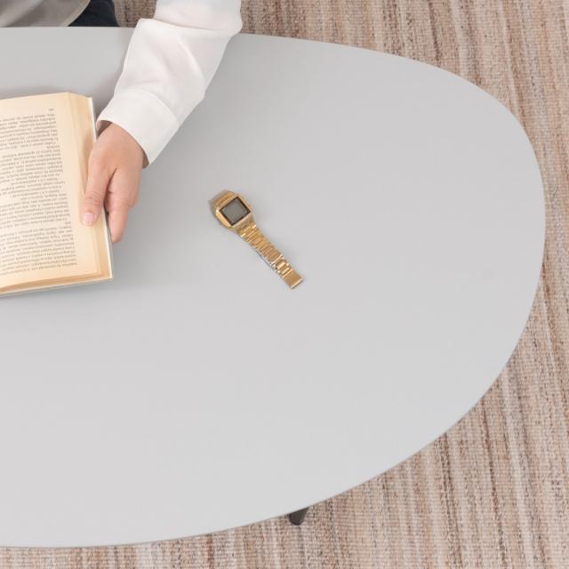 メラミン化粧繊維板を使用した天板とスチール脚の異素材を組み合わせたセンターテーブルです。グレーと黒のモノトーンデザインで様々なスタイルに合います。