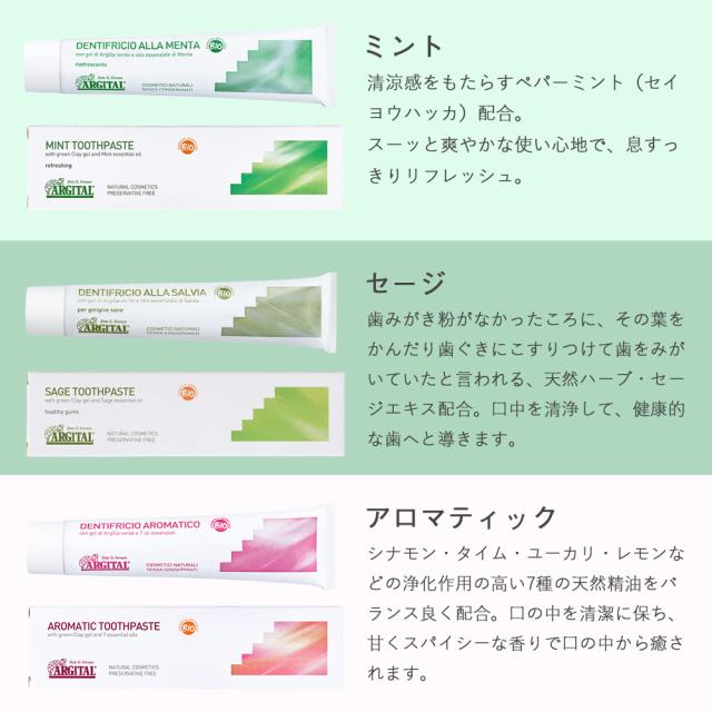 | ALGITAL(アルジタル) 【3個セット】グリーンクレイ歯みがき 75ml(ミント/セージ/アロマティック)