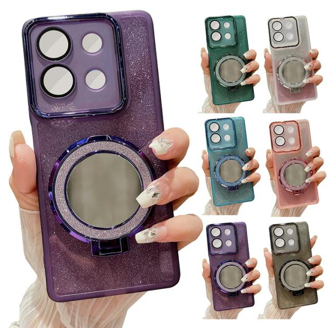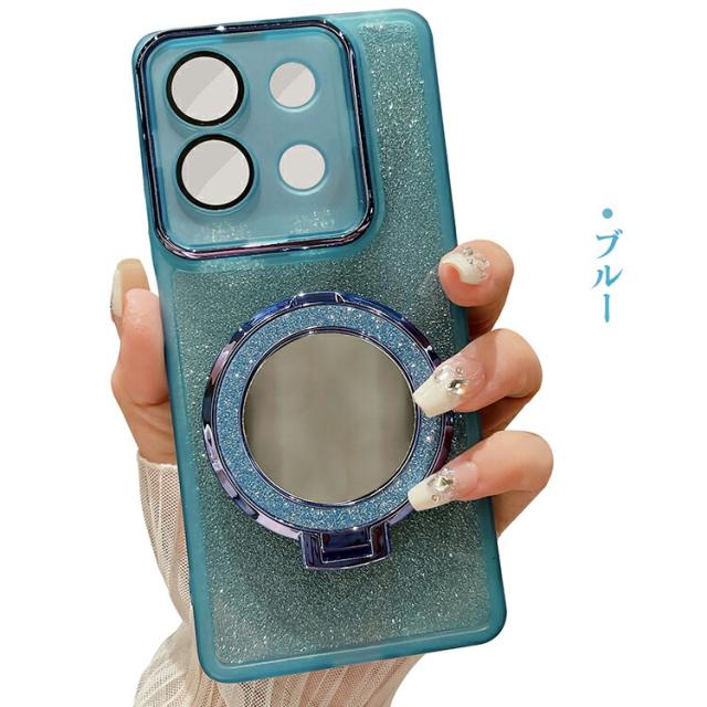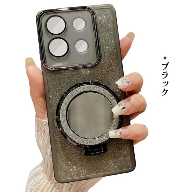 Redmi Note 13 Pro 5G ケース カバー 分離型スマホリング付き ミラー付き スタンド機能 Qi充電 ワイヤレス充電 対応 きらきら かわいい TPU ソフトケース グリッター グラデーション 小米 シャオミ レッドミー ノート13 プロ おすすめ シャオミー レドミー