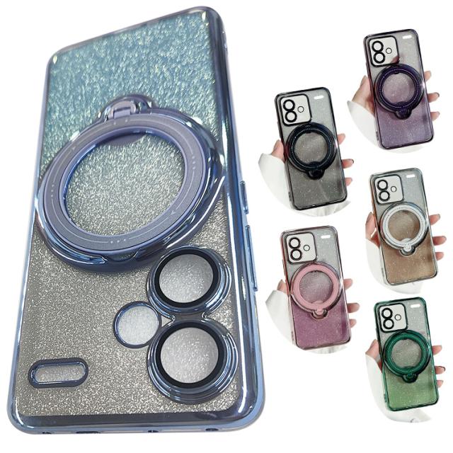 Redmi Note 13 Pro+ 5G ケース カバー メッキ 一体型スマホリング付き スタンド機能 Qi充電 ワイヤレス充電 対応 背面ケース ストラップ穴 きらきら かわいい グリッター エレガント 小米 シャオミ レッドミー ノート13 プロ おすすめ シャオミー レドミー
