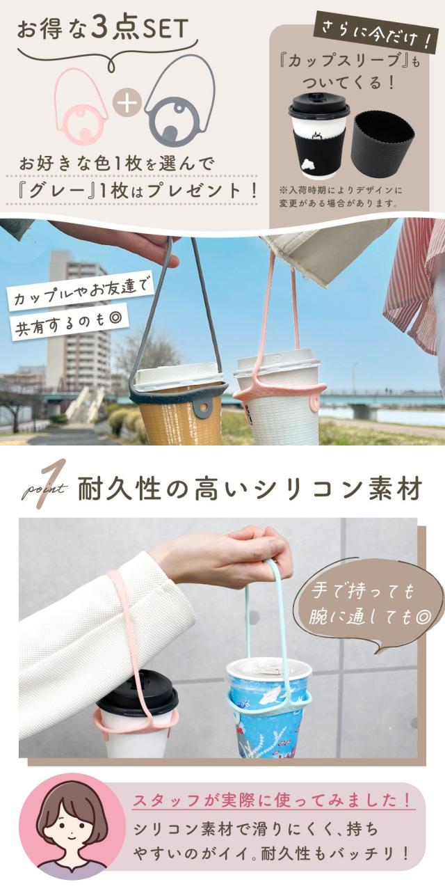 カップホルダー/ドリンクホルダー/3点セット/ホルダー/コンパクト/ベビーカー/コップホルダー/ドリンクカップホルダー/テイクアウト/コンビニコーヒー/コーヒー/持ち歩き/シリコン/ドリンクストラップ/ストラップ/カップストラップ/紐/ひも/ボトルホルダー/かわいい/おしゃれ/テイクアウトドリンク/散歩/外出 お出かけ/アウトドア/スポーツ観戦/ストロー/固定/ビール/ギフト/プレゼント/紙コップ/手持ち/TN-CHDR/