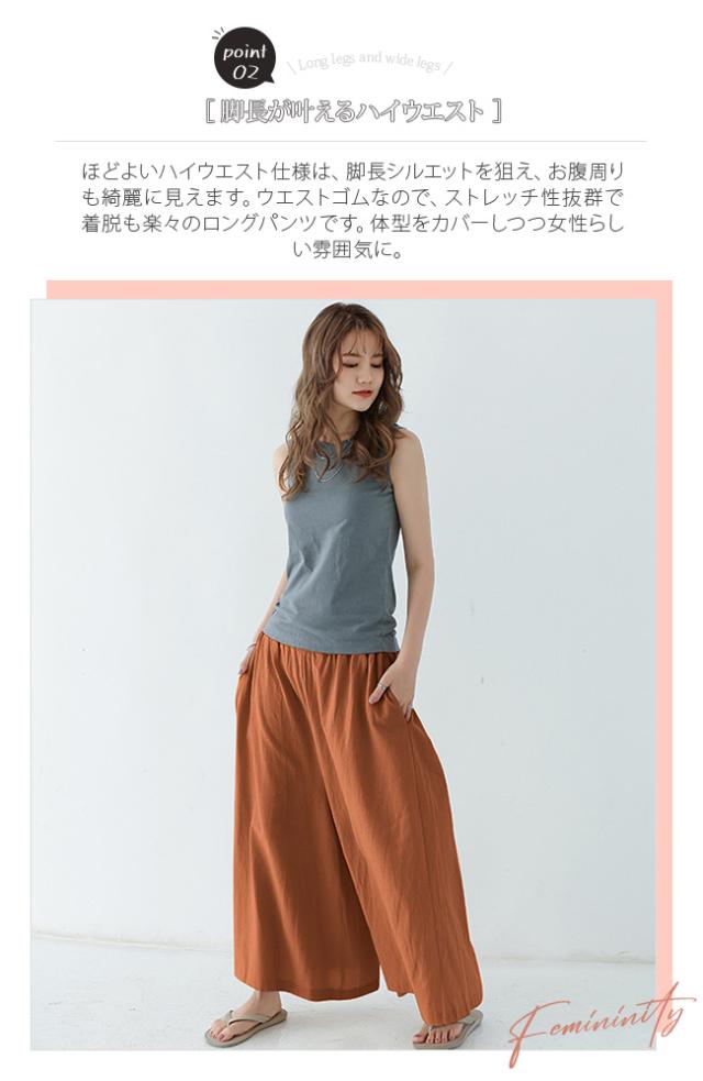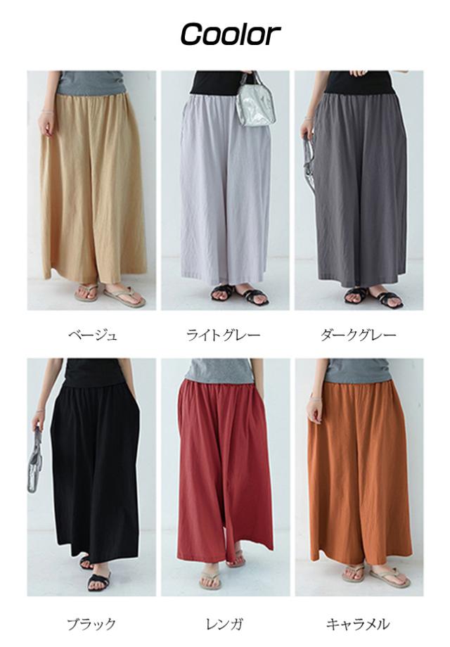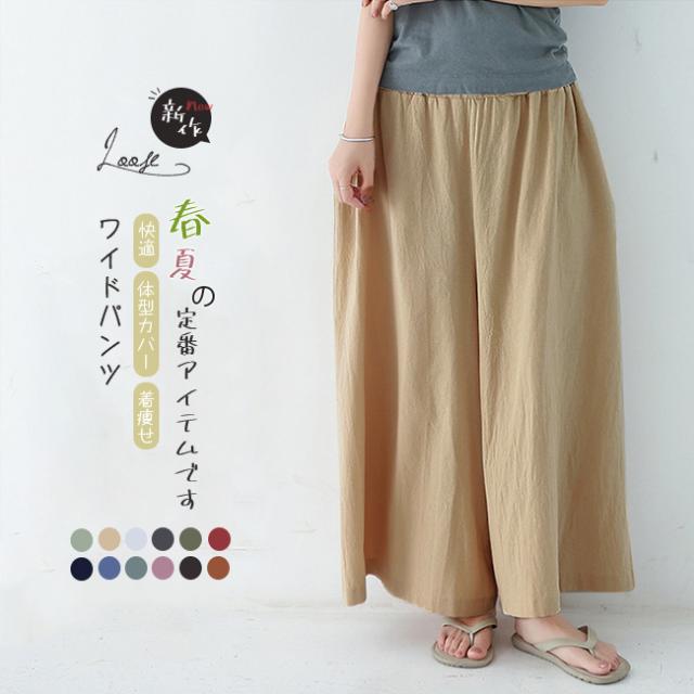 棉麻ワイドパンツ レディースファッション 夏 リネンパンツ 美脚 ハイウエストワイドパンツ 夏着痩せ ガウチョパンツ ハイウエストパンツ 無地 ゆったり 大きい シンプル 普段着 通勤 春夏秋