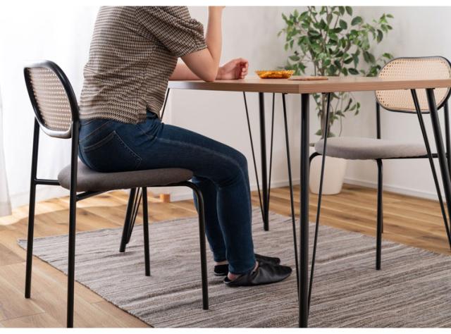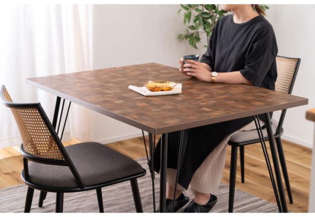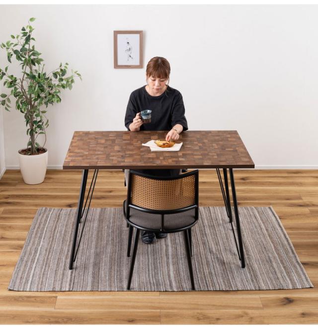 ●温もりのある木目調デザインとシンプルなアイアンが特徴のダイニングテーブル。