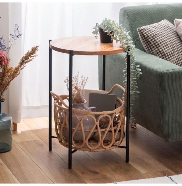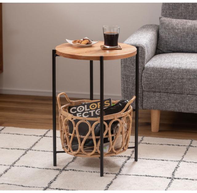 バスケット付きサイドテーブル テーブル バスケット付き 収納 机 サイドテーブル ラタン 籐 スチール 天板 ソファサイド ベッドサイド 新生活 コンパクト 省スペース インテリア 北欧(代引不可)【送料無料】