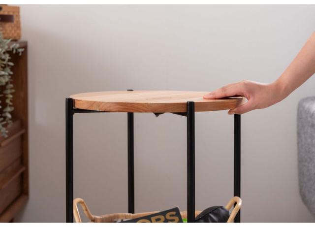 ●取り外し可能な天板が付いた、収納ができるラウンドテーブル