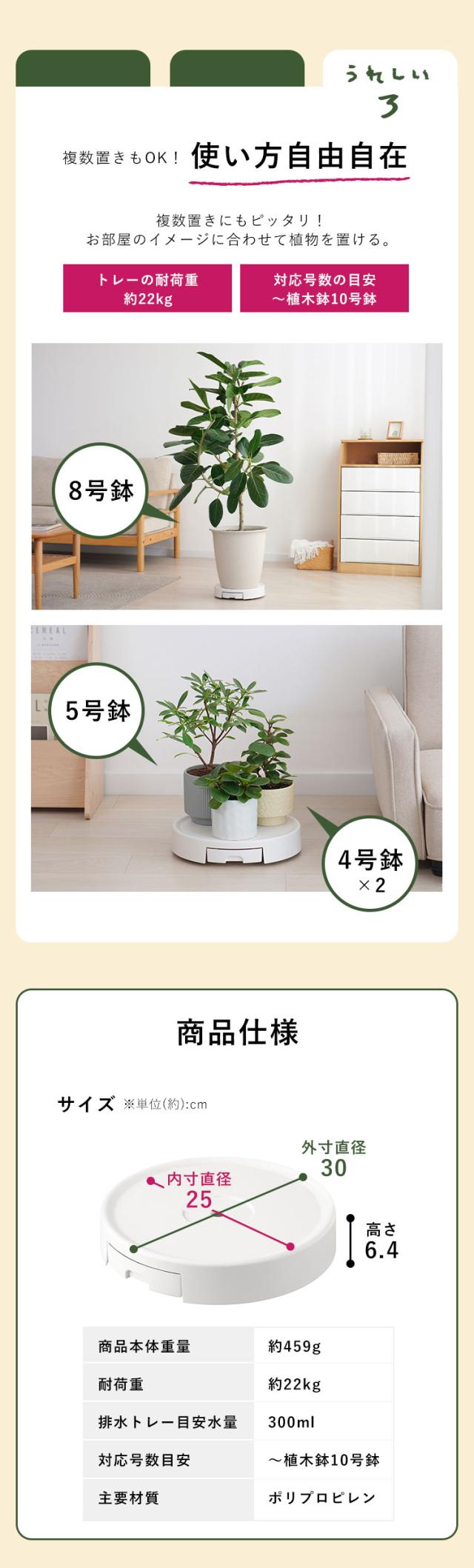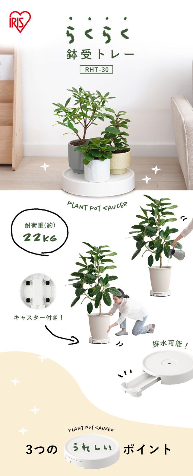鉢置き キャスター付き 10号 鉢台 植木鉢台 排水トレー付き プラントムーバー 植木鉢トレー 鉢皿 プランター台 プランタースタンド フラワースタンド 観葉植物 おしゃれ らくらく鉢受トレー ホワイト アイリスオーヤマ RHT-30