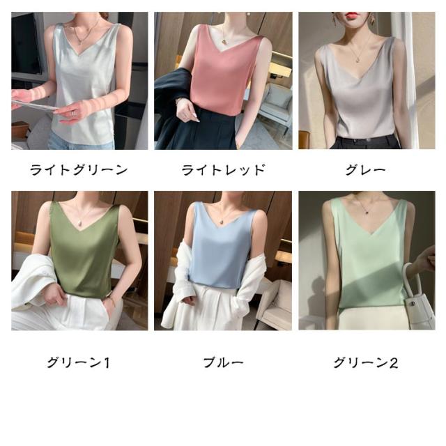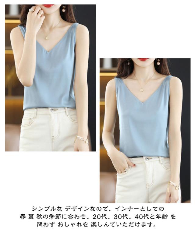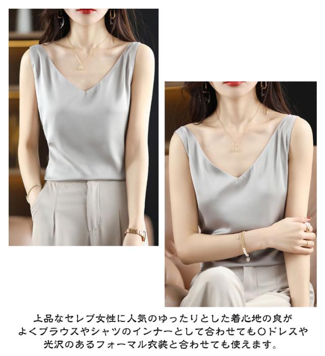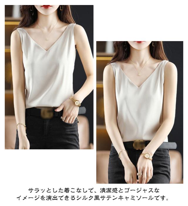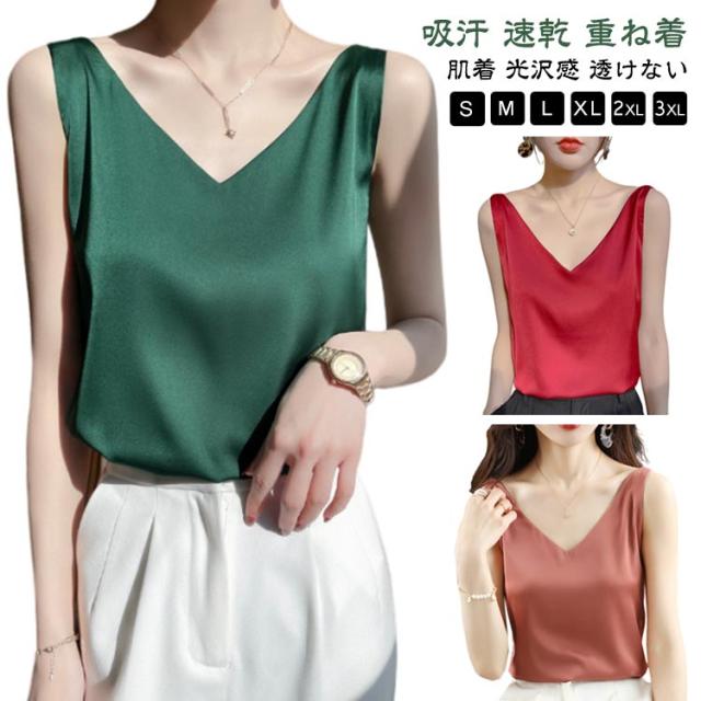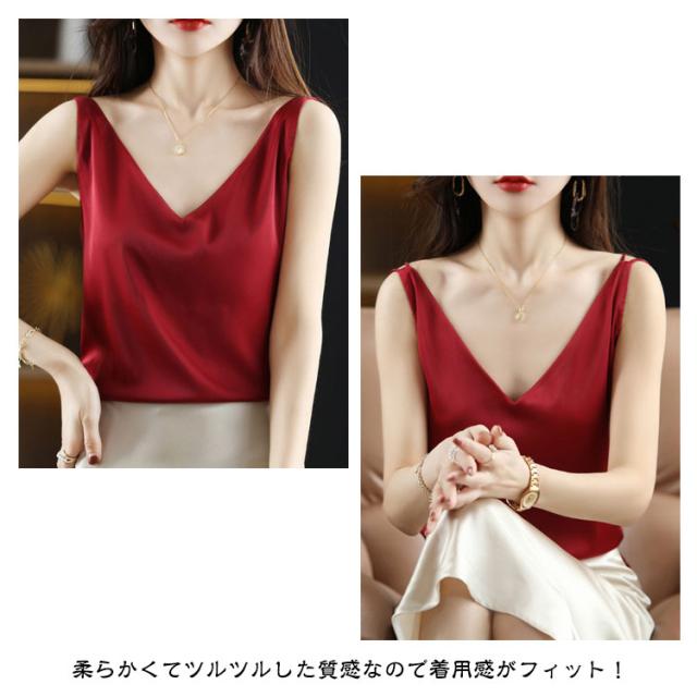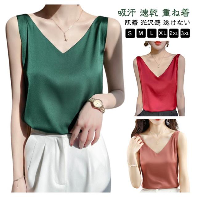 キャミソール Vネック サテン レディース シャツ 吸汗 キャミソール 大きいサイズ トップス インナー ノースリーブ 透けない 春 夏 速乾 締めつけない タンクトップ 秋 重ね着 アンダーウェア 肌着 光沢感 キャミソール 部屋着 シンプル