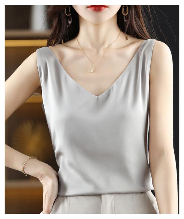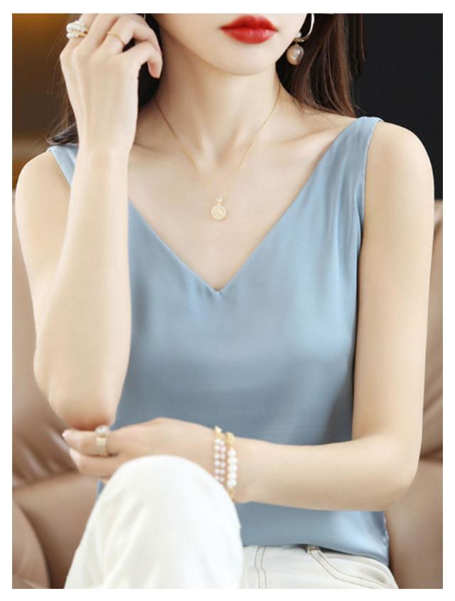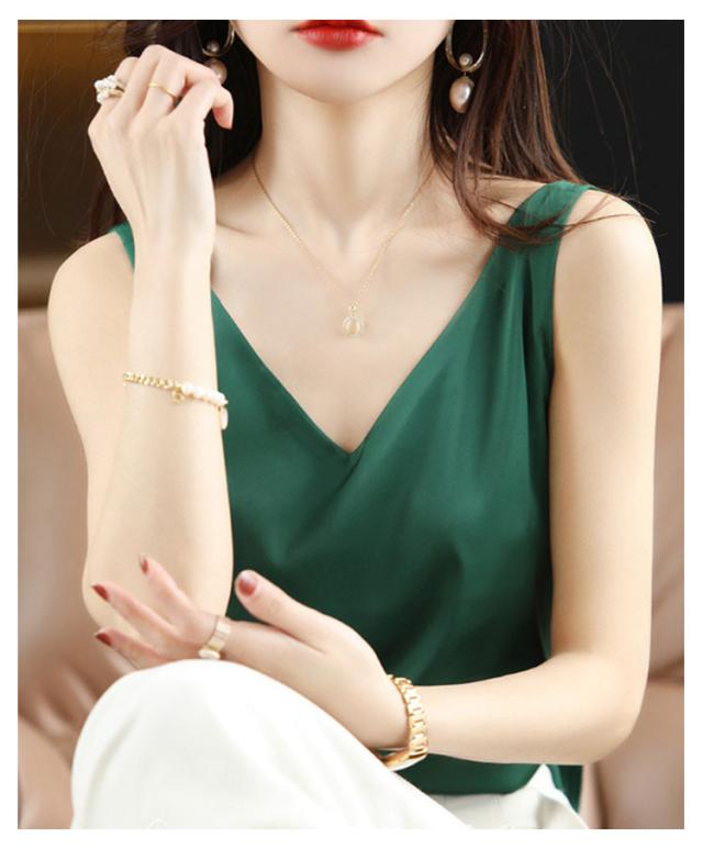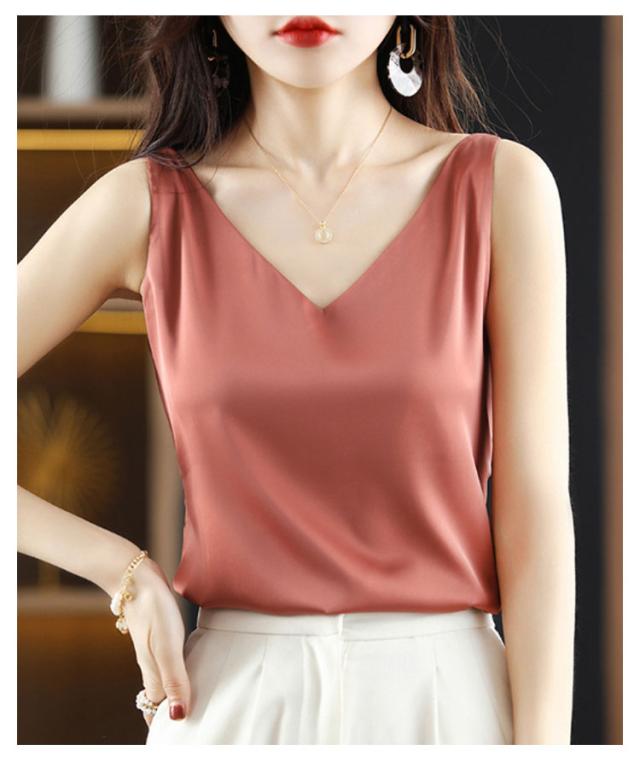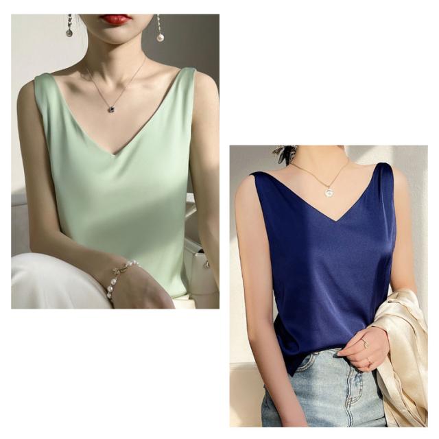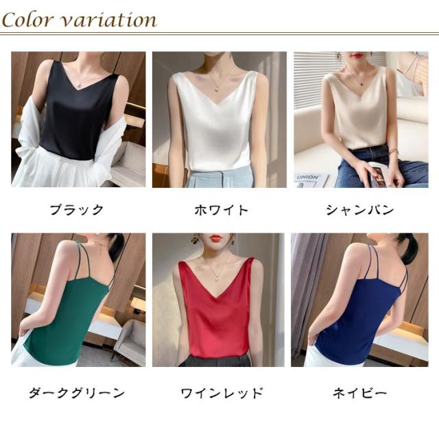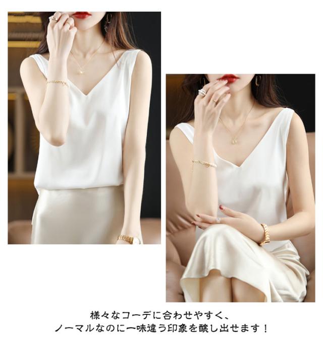 キャミソール Vネック サテン レディース シャツ 吸汗 キャミソール 大きいサイズ トップス インナー ノースリーブ 透けない 春 夏 速乾 締めつけない タンクトップ 秋 重ね着 アンダーウェア 肌着 光沢感 キャミソール 部屋着 シンプル