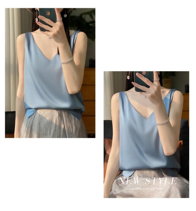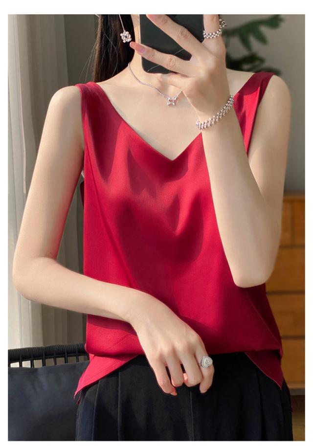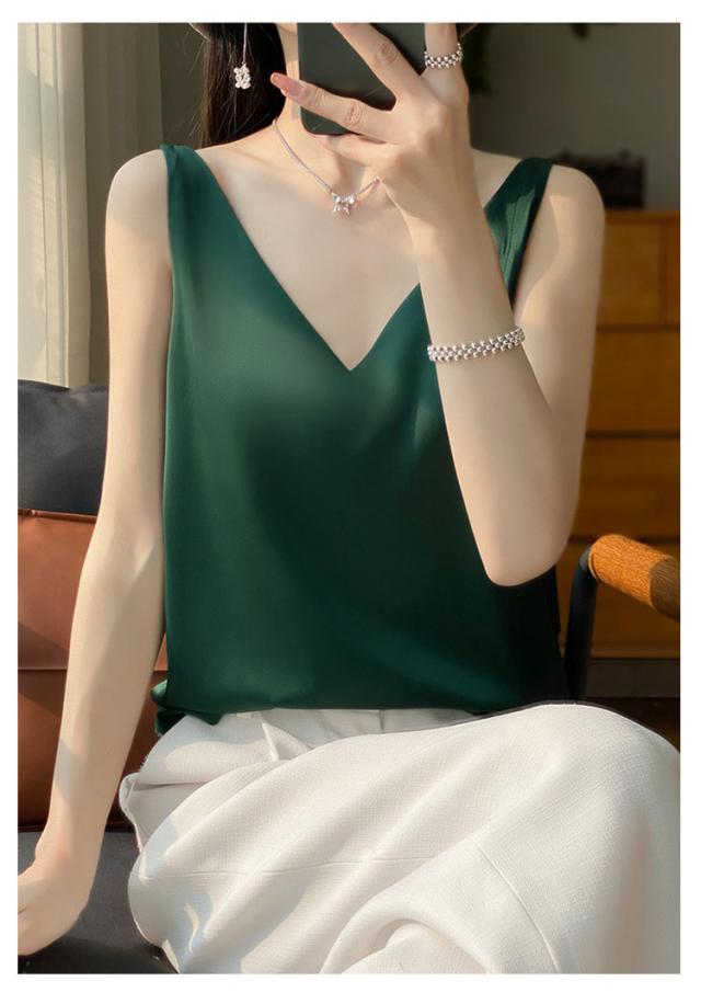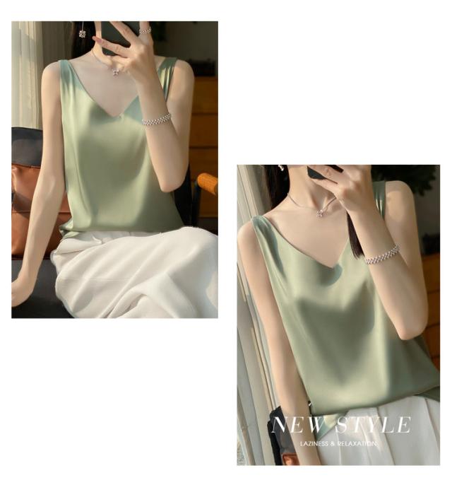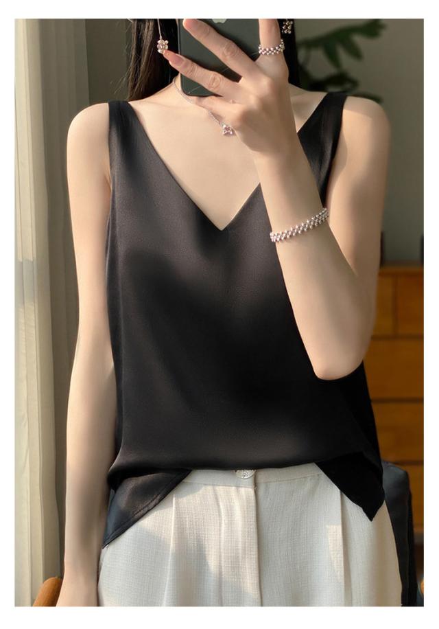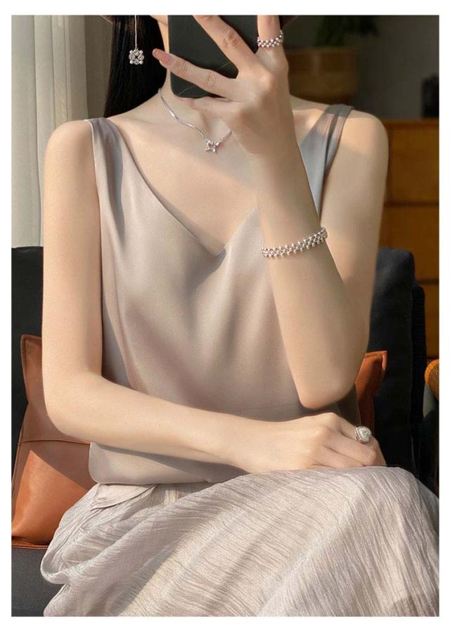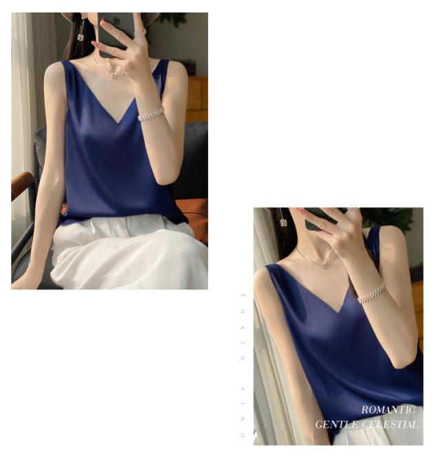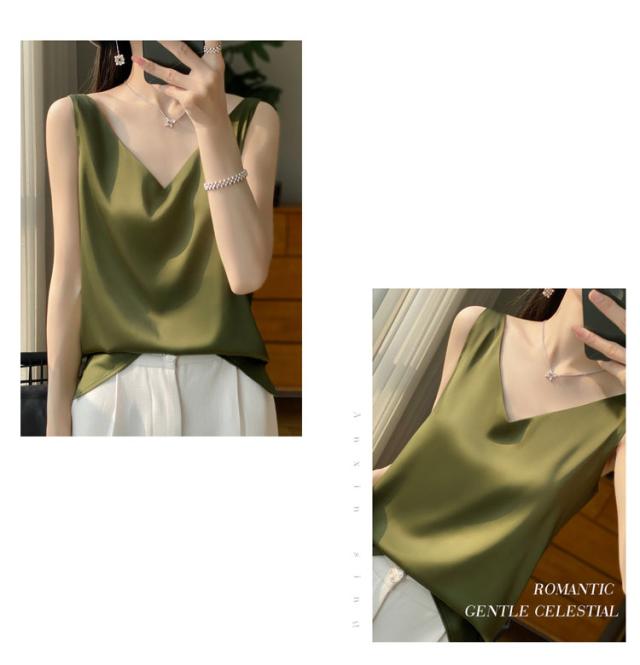 タンクトップ サテン レディース シルク Vネック ブラウス 重ね着 トップス サテンスリップ インナーキャミソール インナーキャミソール 無地 光沢 オフィス セクシー 上品 フォーマル 見せインナー 薄手 下着 肌着