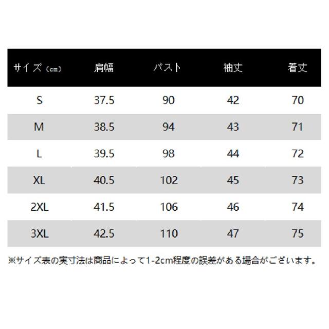 | サイズ | S M L XL 2XL 3XL |