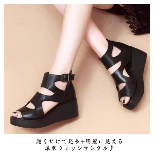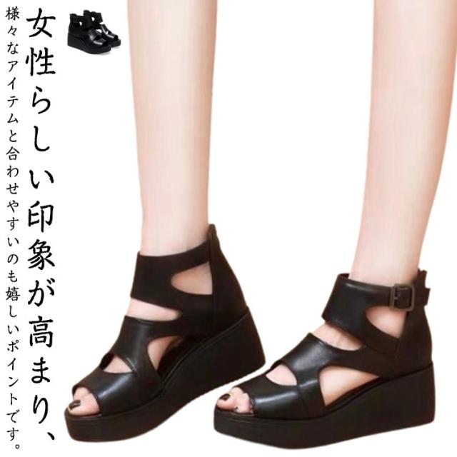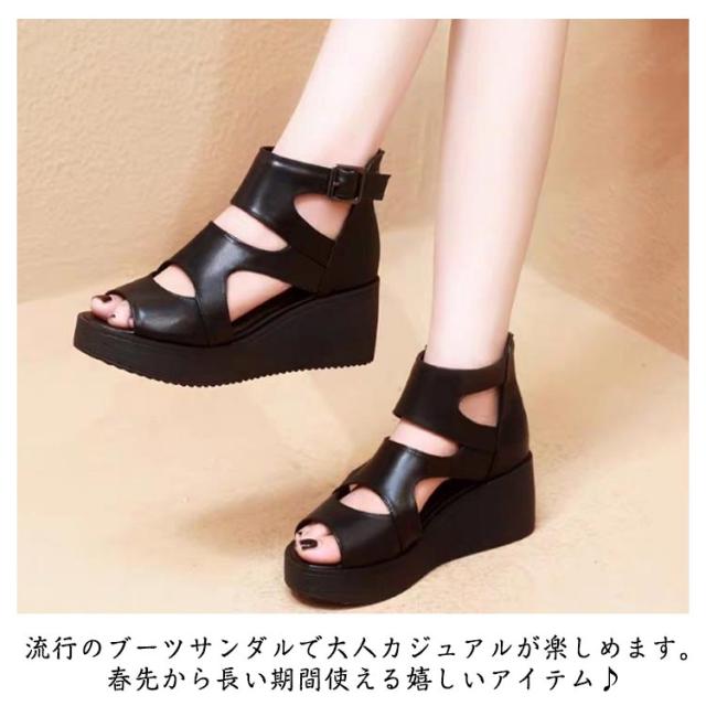 夏 厚底 ブーツサンダル 太ヒール カジュアル レディース靴 厚底サンダル オープントゥ レザー サマーブーツ ハイヒール ウエッジソール シューズ サンダル インヒール厚底 ショートブーツ サマーブーツ 痛くない 歩きやすい 通気性 大人女性 疲れにくい 美脚 靴